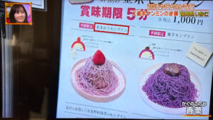 チーズテリーヌむらさき芋モンブラン 2024 12/17 お知らせ 季節限定チーズテリーヌむらさき芋モンブラン お知らせ 芋栗スペシャルモンブラン 【期間限定】ショコラテリーヌ和栗モンブラン 関連記事 ケンミンショーで紹介されました 2026年2月13日 タワーマンゴー 2025年8月20日 【期間限定】チーズテリーヌマンゴーモンブラン 2025年8月19日 あまおうエール&マンゴーエール 2025年8月19日 【期間限定】ショコラテリーヌ和栗モンブラン 2025年2月20日 芋栗スペシャルモンブラン 2024年12月17日 あまおうモンブラン 2024年12月16日 にゃんだフィナンシェ 2024年9月13日