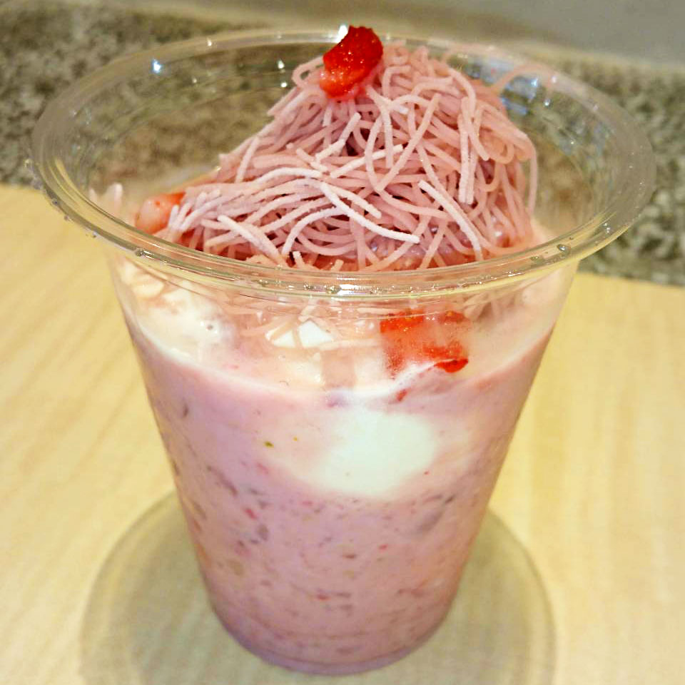 中にもトッピングにもたっぷりあまおういちごを使っています。 -